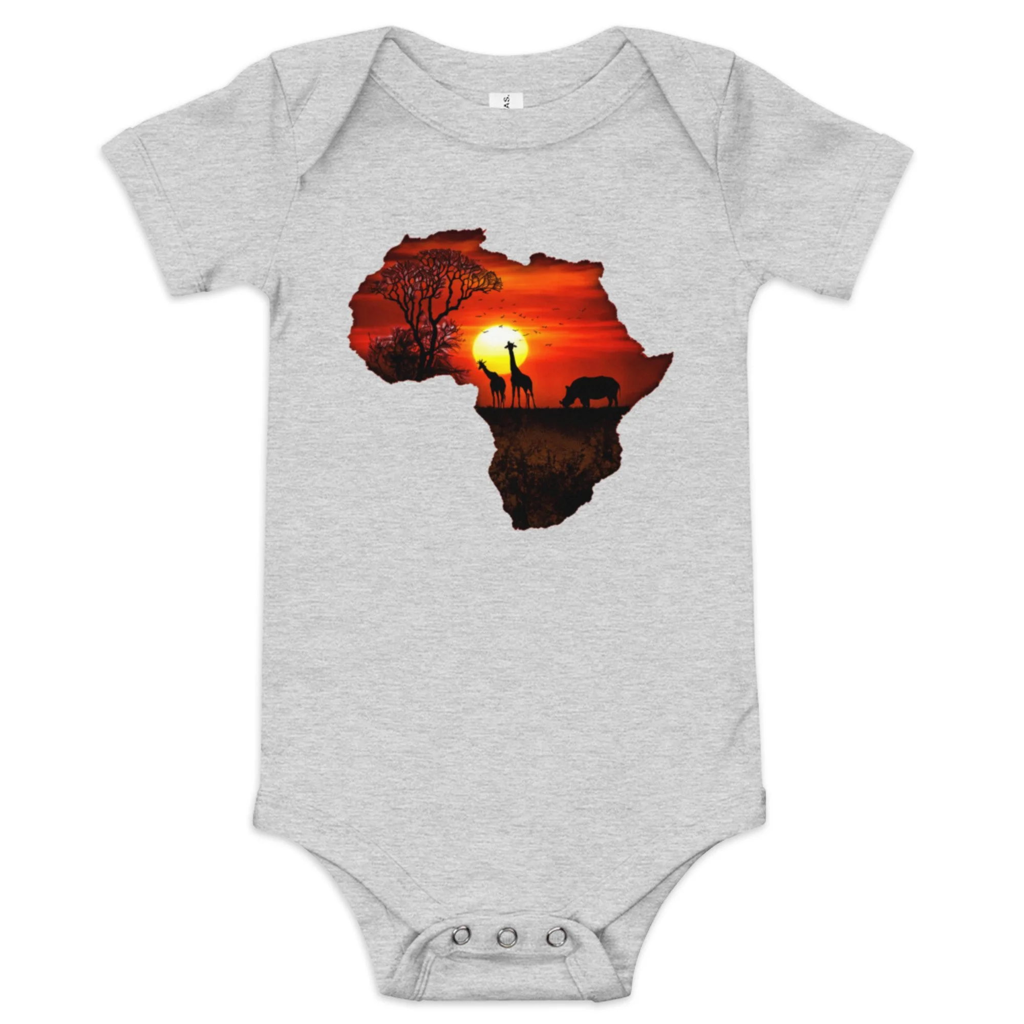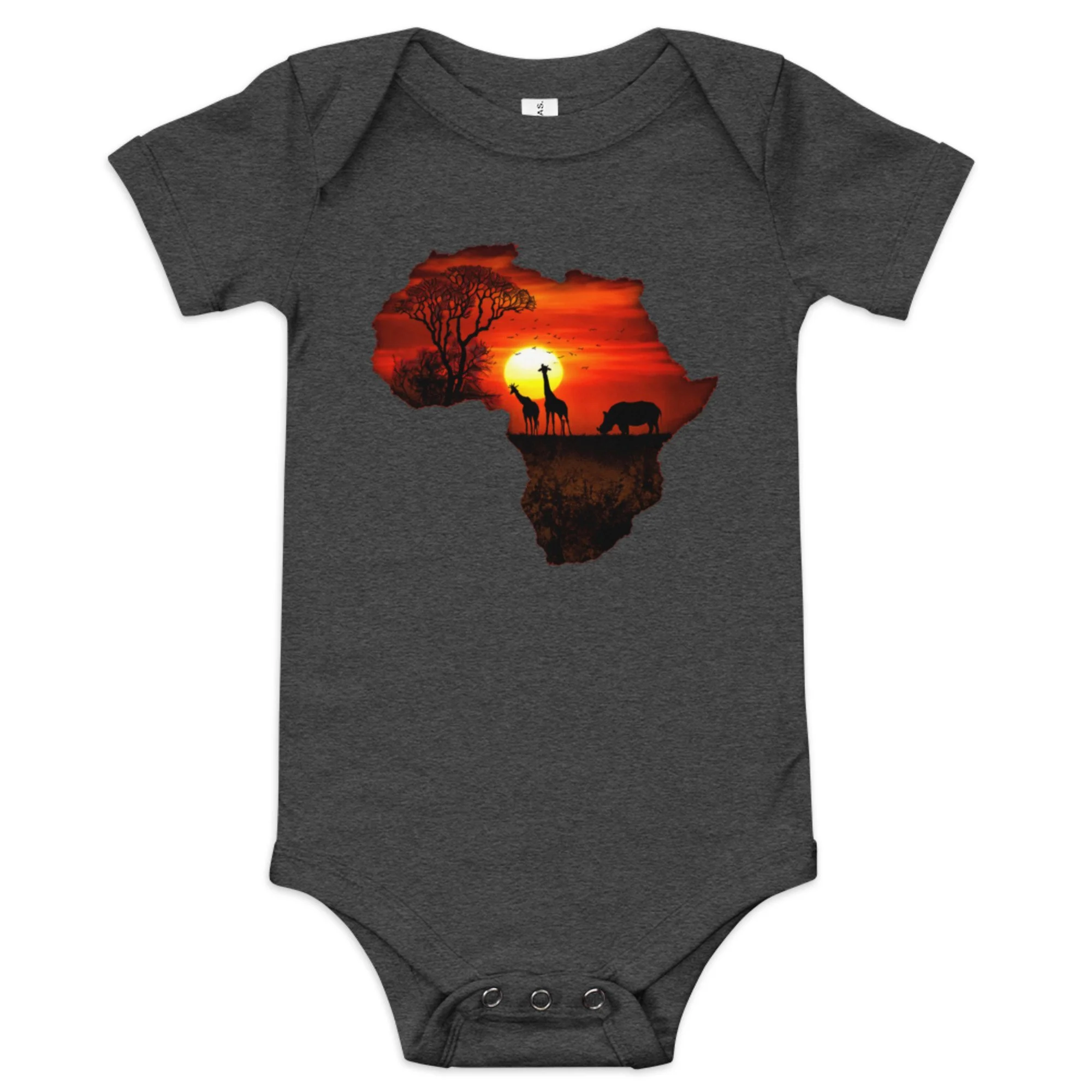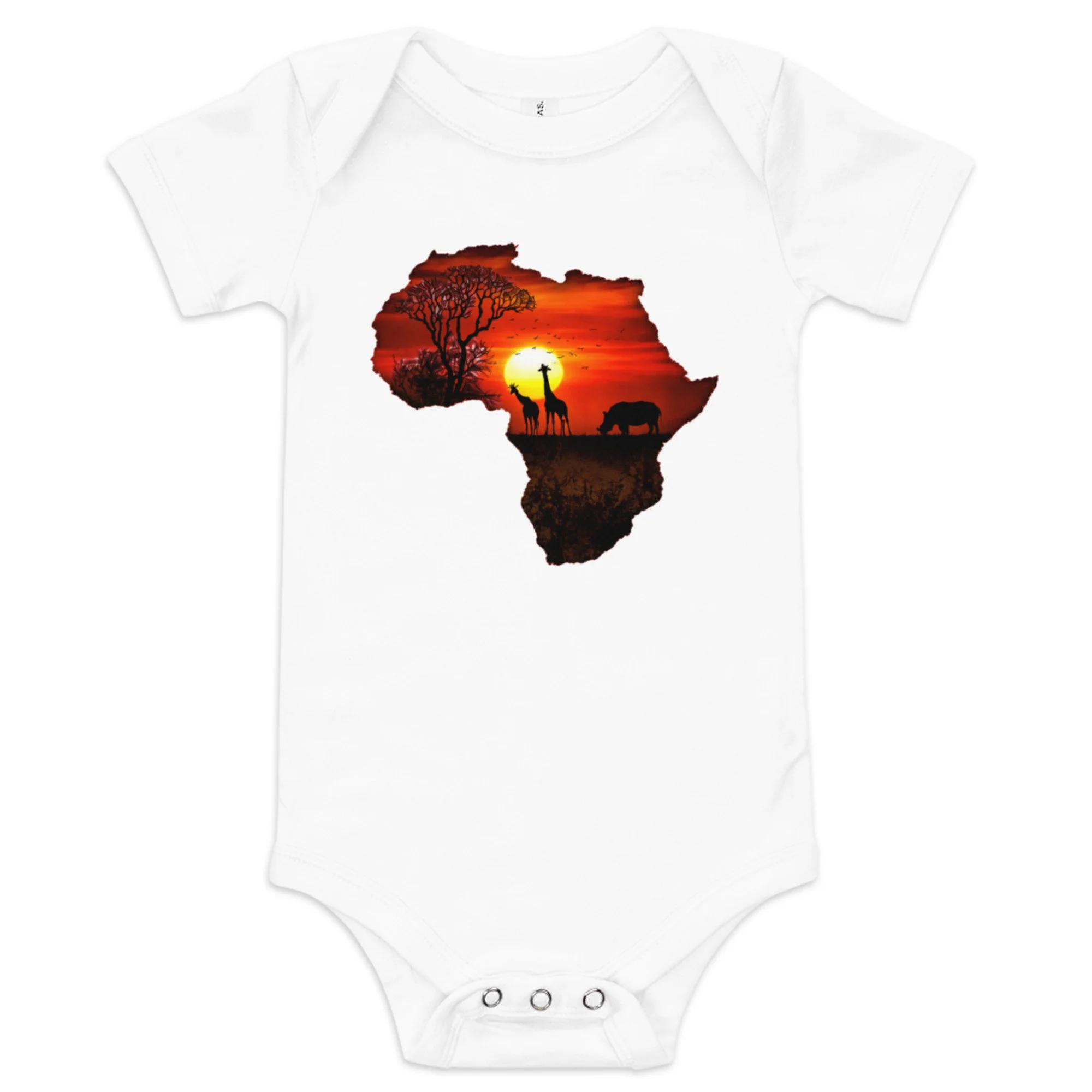 African Sunset Baby Onesie – Safari Africa Infant Bodysuit, Wildlife Silhouette Outfit, Afrocentric Baby Clothing, Newborn Gift