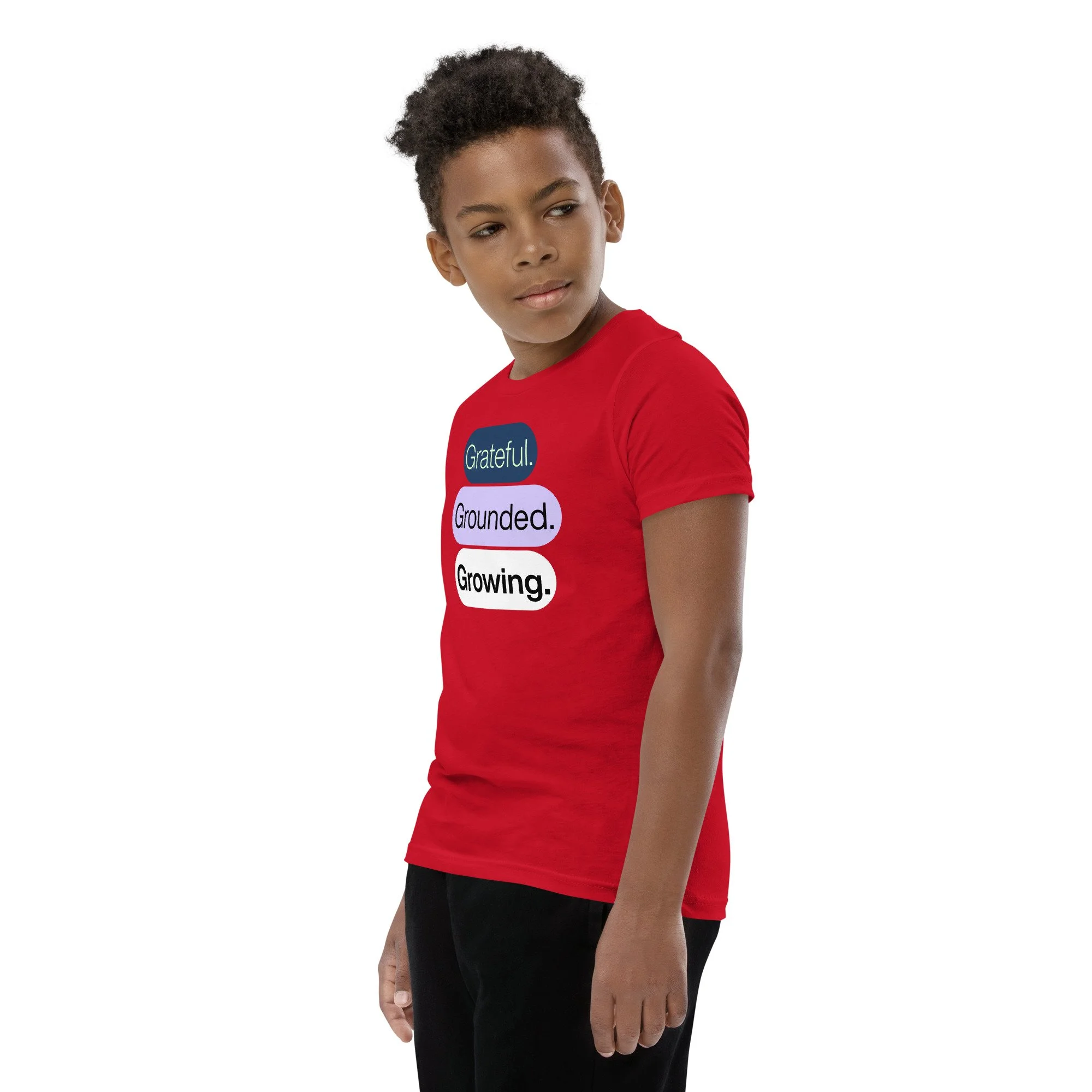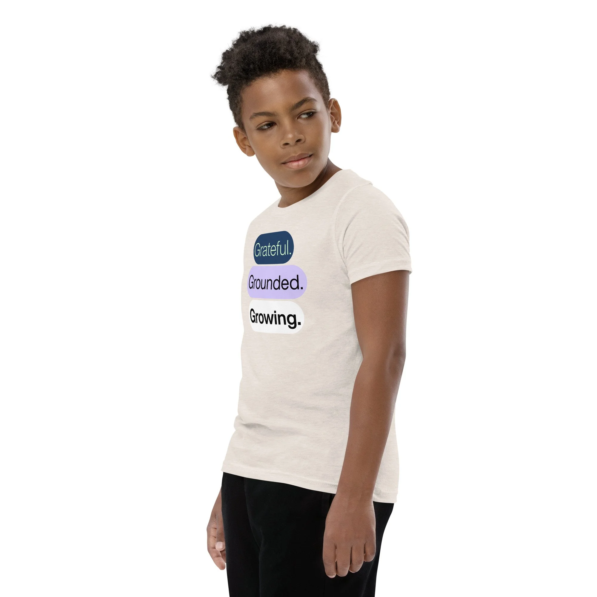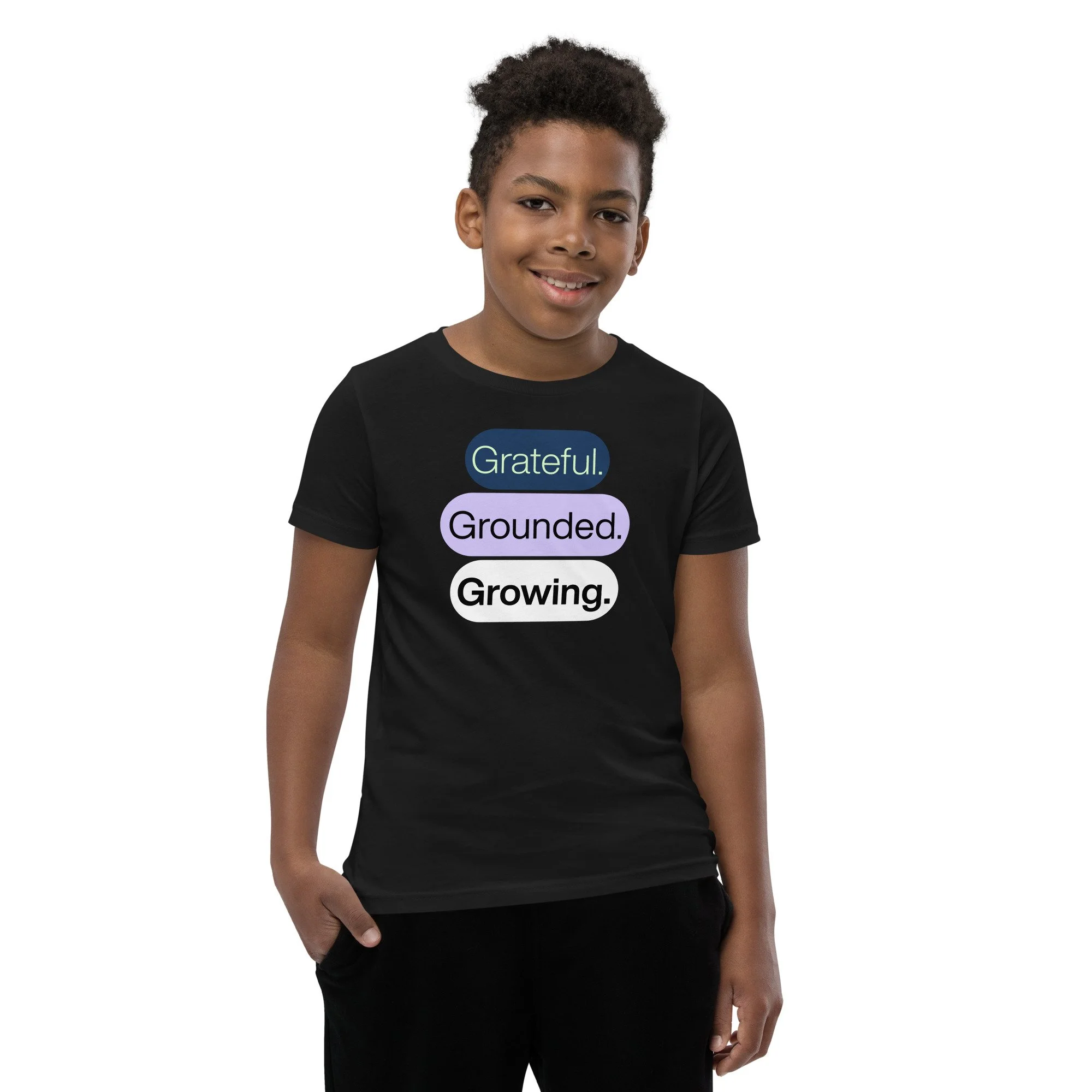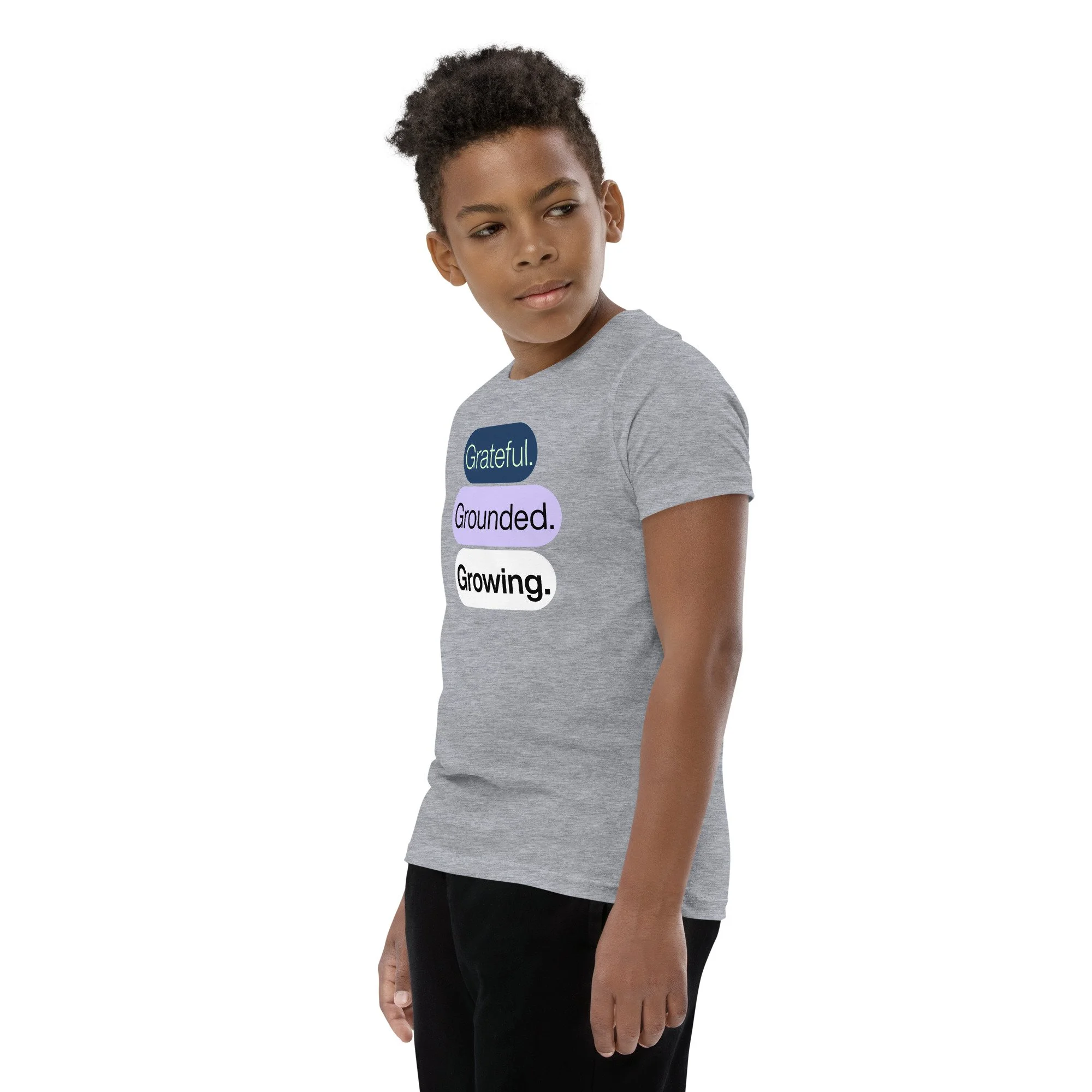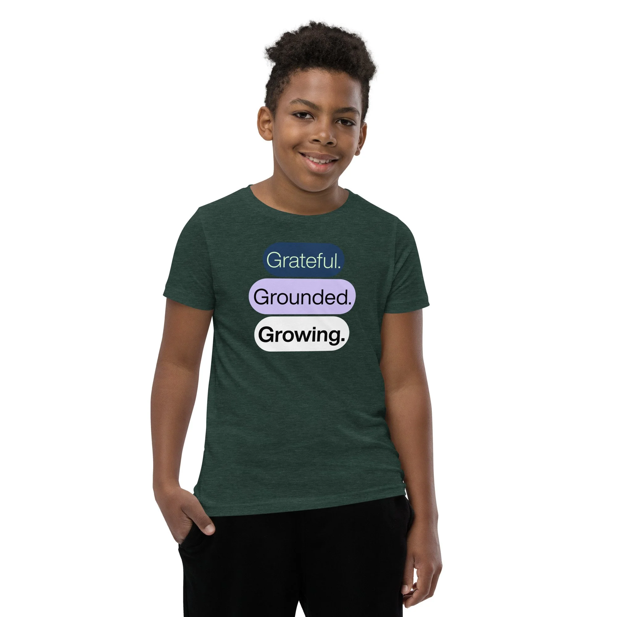 Grateful Grounded Growing Youth T-Shirt – Inspirational Kids Tee, Afrocentric Youth Clothing, Positive Mindset Shirt for Kids