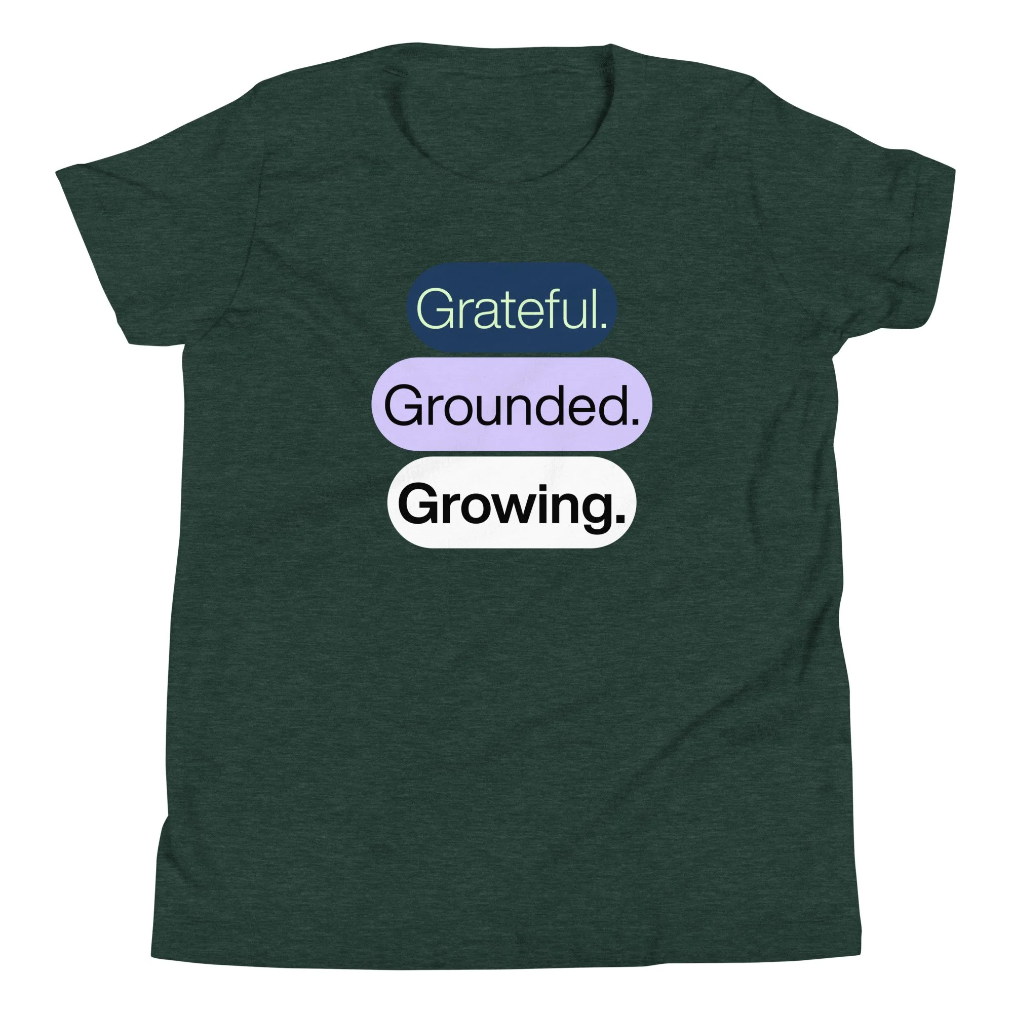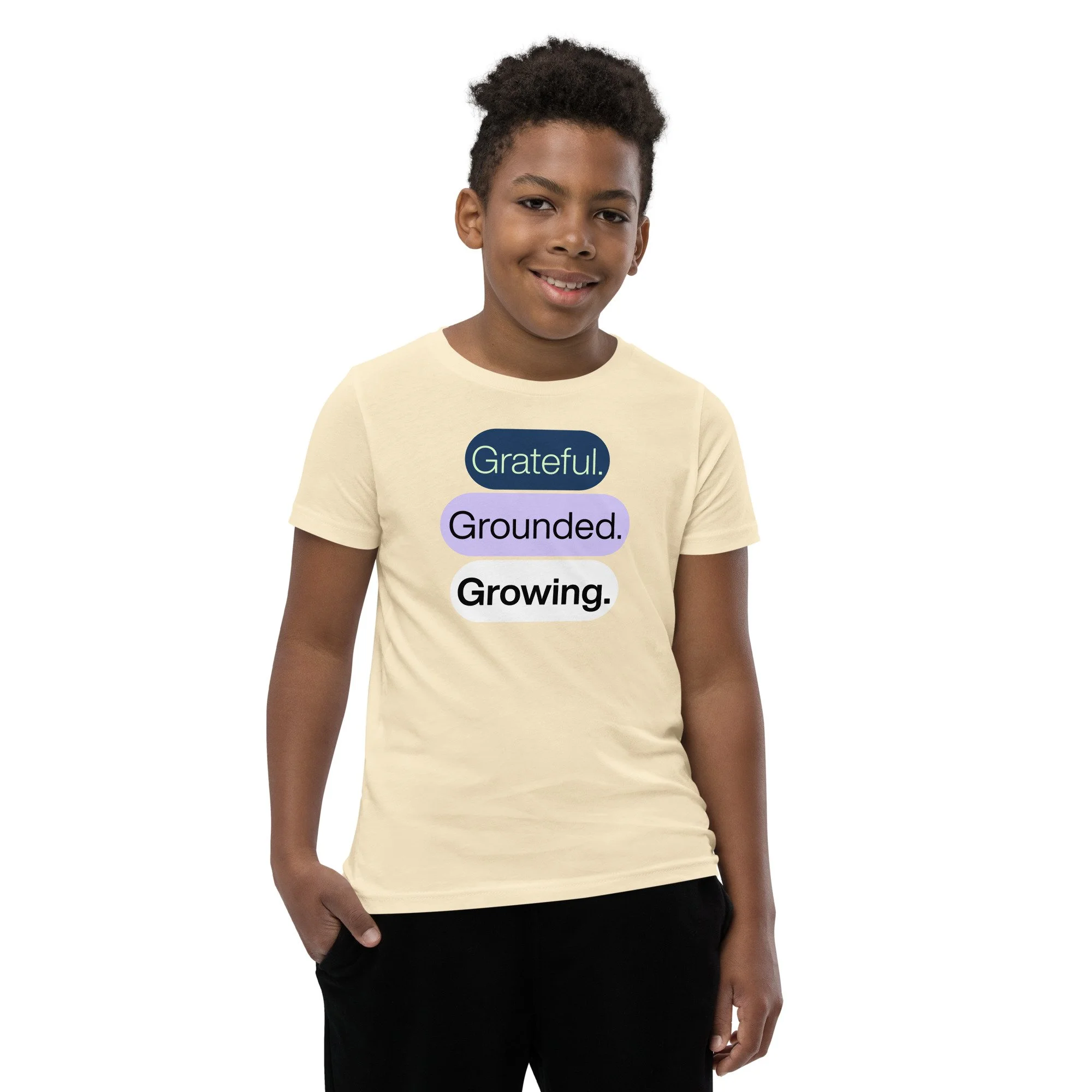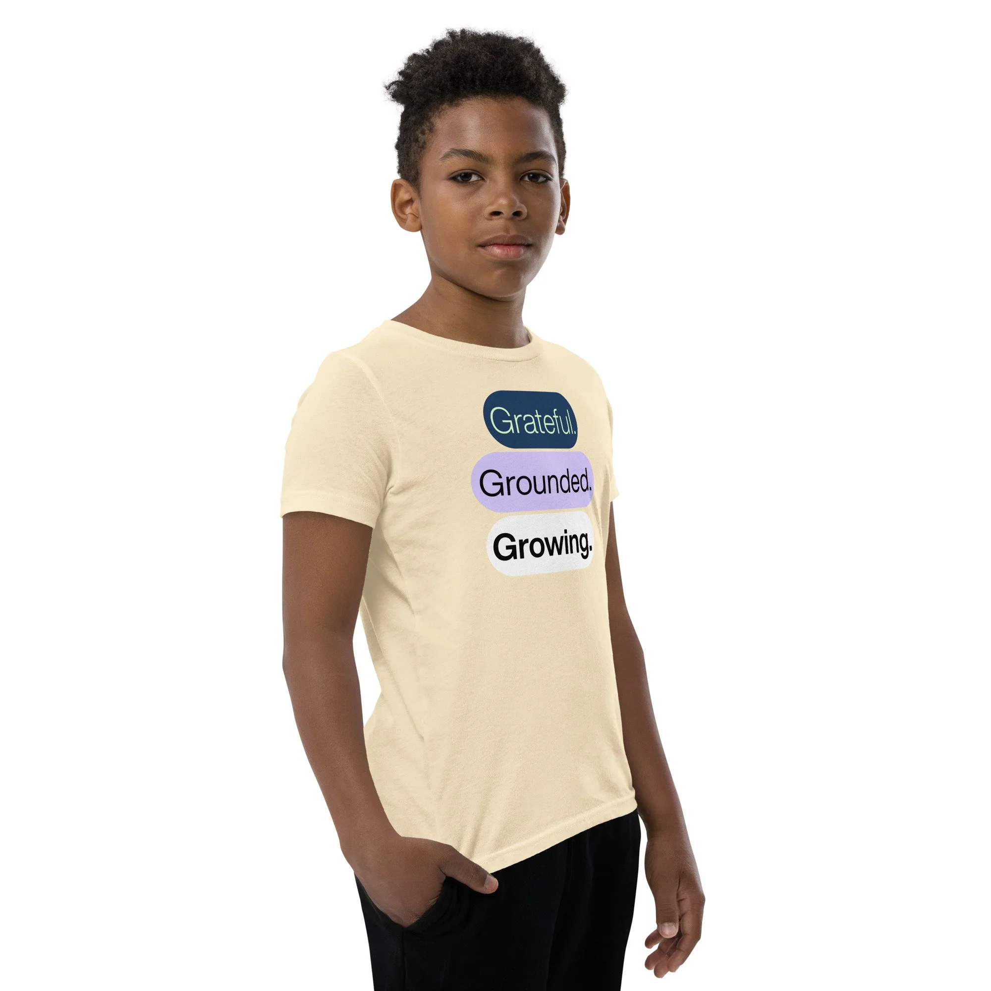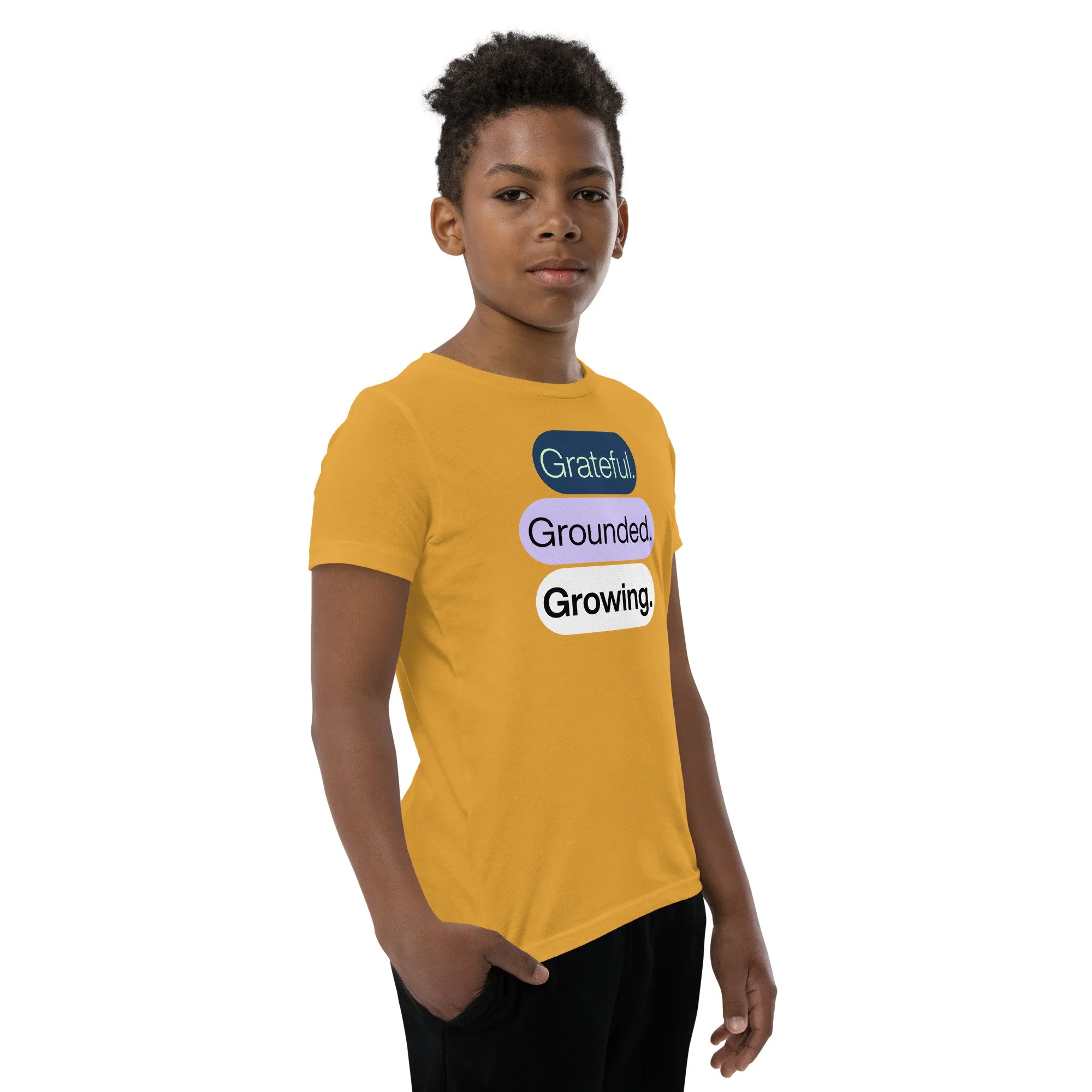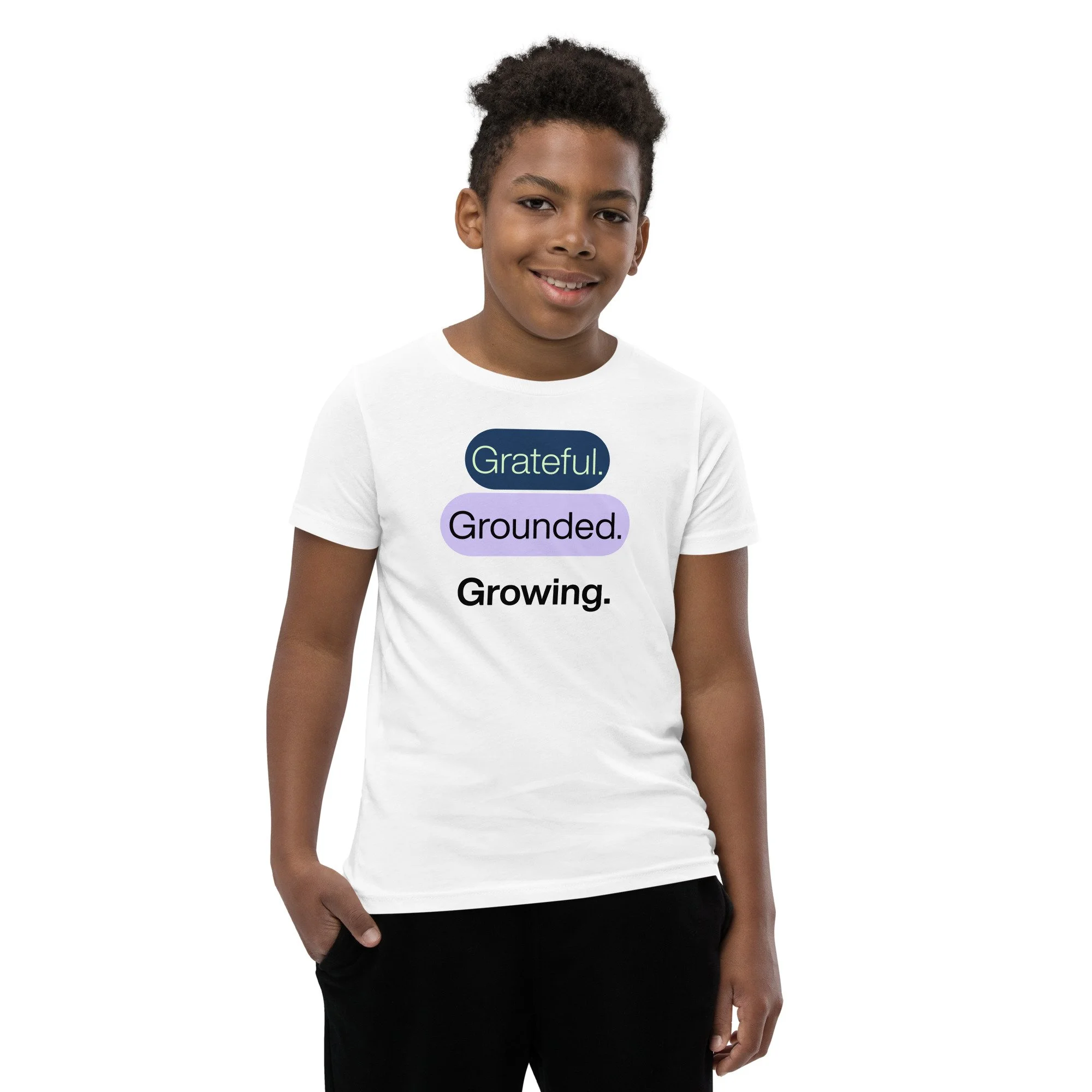 Grateful Grounded Growing Youth T-Shirt – Inspirational Kids Tee, Afrocentric Youth Clothing, Positive Mindset Shirt for Kids