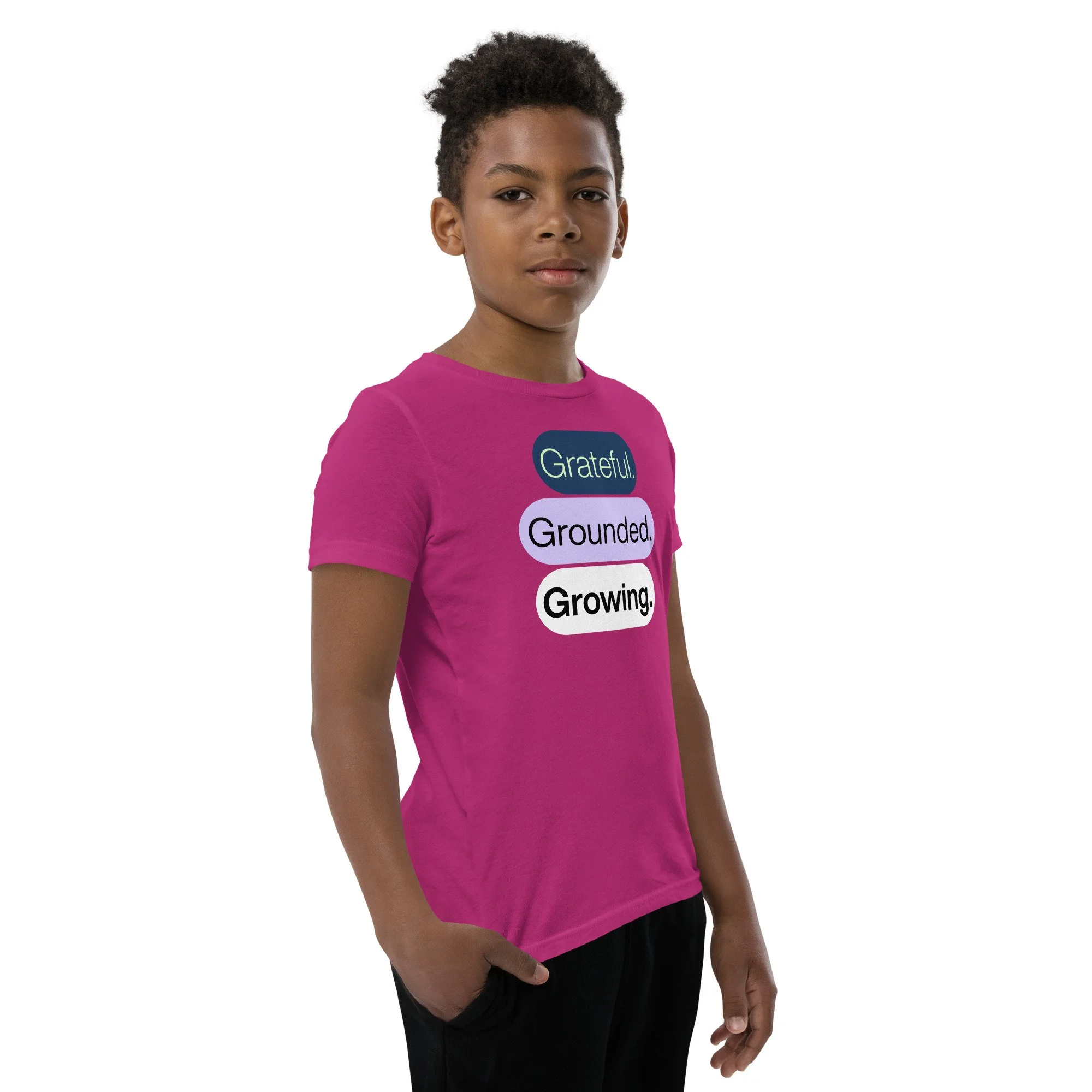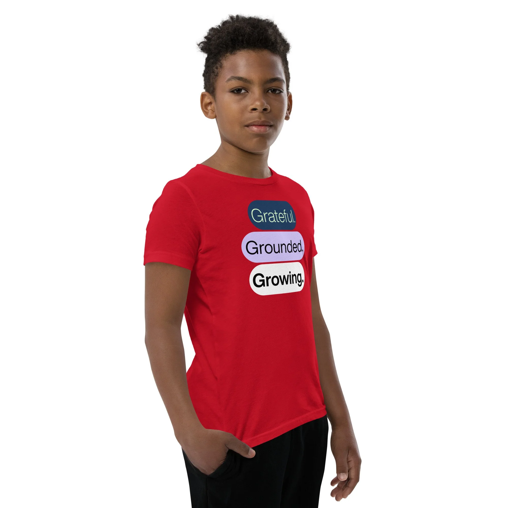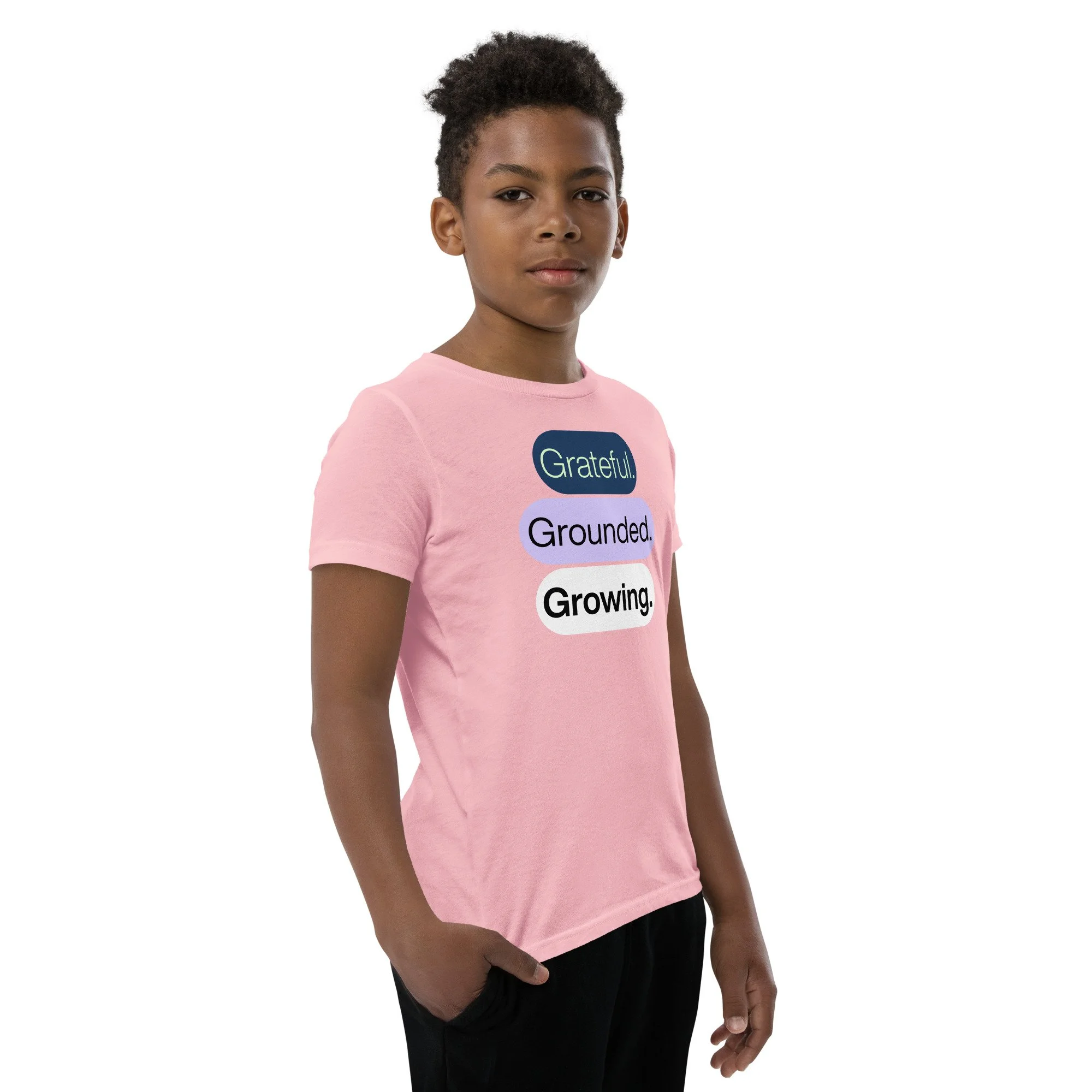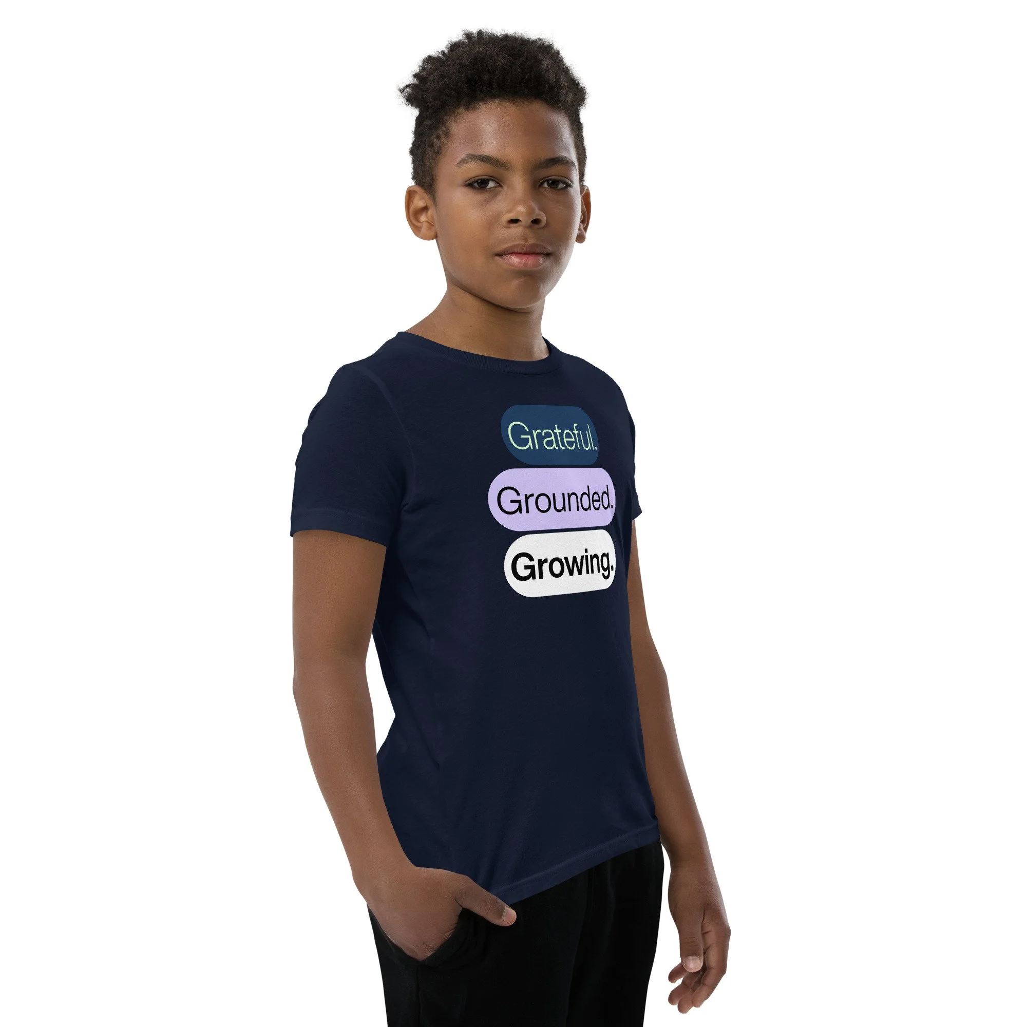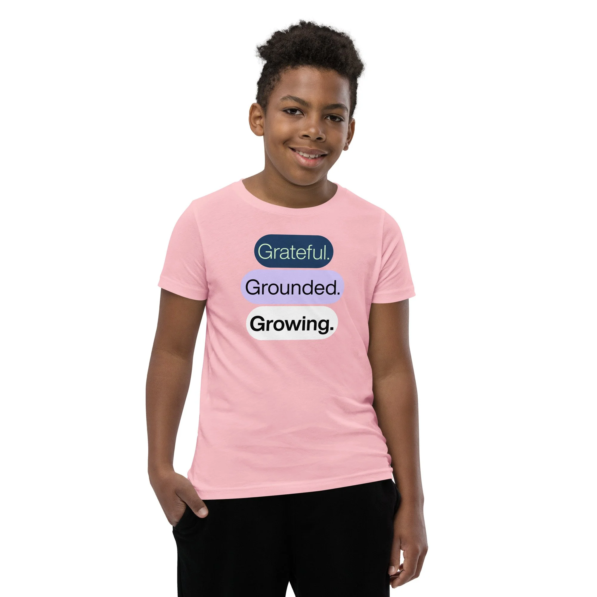 Grateful Grounded Growing Youth T-Shirt – Inspirational Kids Tee, Afrocentric Youth Clothing, Positive Mindset Shirt for Kids
